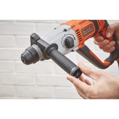 Der praktische Bohrhammer BEHS02K von Black+Decker mit leistungsstarken 800 W unterstützt Sie bei leichten Bohr- und Schlagbohrarbeiten in Beton, Stein und Naturstein. Mit einer Schlagzahl von 5.500/min erzielt der Schlagbohrer ein effizientes und sauberes Ergebnis. Die max. Schlagkraft beträgt 2,2 J, wodurch sich der Bohrhammer sowohl fürs Bohren in harten Materialien wie Stein und Beton als auch zum Meißeln, Stemmen sowie zum Abtragen von Fliesen bestens eignet.