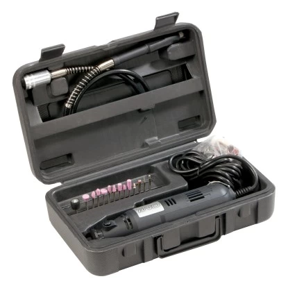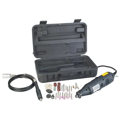Das CMI Modellbau- und Gravierset besteht aus 41 Teilen und ist ein vielseitiges Präzisionswerkzeug zum Bohren, Fräsen, Gravieren, Polieren, Schleifen und Trennen. Es ist mit einer Leistung von 135 W ausgestattet. Die Leerlaufdrehzahl beträgt 10.000/min – 32.000/min (Umdrehungen).Die Kabellänge beträgt 2 m.