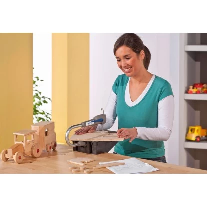Aufgrund der abnehmbaren Laubsäge kann das Gerät nicht nur stationär sondern auch als mobiles Handgerät eingesetzt werden. Diese benutzerfreundliche Dekupiersäge lässt sich nicht nur einfach aufbewahren und einstellen sondern auch sehr leicht bedienen.