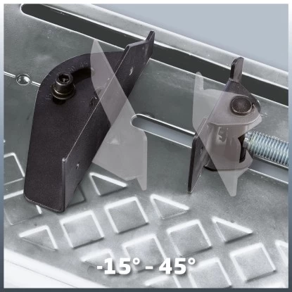 Die Sägeblattfixierung sorgt für einen sicheren Wechsel des Sägeblattes. Optimal arbeiten lässt es sich mit der Trennnscheibe mit einem Durchmesser von 355 mm x 25,4 mm x 3,2 mm. Die Klemmvorrichtung mit Schnellverschluss ermöglicht Winkel-Zuschnitte von – 15 Grad bis + 45 Grad. Ein Funkenabweiser schützt das Umfeld vor glühenden Funken. Ausgestattet ist die Einhell Metall-Trennmaschine mit einem Werkzeughalter für den mitgelieferten Sechskantschlüssel, sowie einer Transportsicherung und einem zusätzlichen Griff für den Transport.