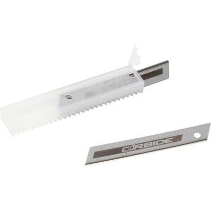 Die Stanley Carbide Abbrechklingen 18 mm zeichnen sich durch eine innovative und 5x langlebigere Schneide in Relation zu vergleichbaren Klingen aus. Sie sind mit einer Wolframkarbid beschichteten Hartmetalllegierung versehen, welche per Hochleistungslaser aufgetragen wurden. Somit sind nur Diamanten langlebiger und härter. Darüber hinaus sind die Klingen dank der beschichteten Schneidkante bruchfest und flexibel.