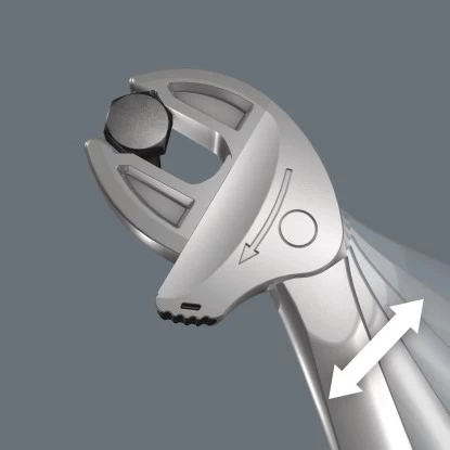 Viele Anwender wünschen sich ein universelles Schraubwerkzeug mit möglichst großem Einsatzspektrum. Ein einziges Werkzeug für mehrere metrische und zöllige Abmessungen sollte es sein. Es sollte sich automatisch auf die unterschiedlichen Schraubengrößen einstellen. Sicher zupacken, nichts beschädigen und eine hohe Arbeitsgeschwindigkeit ermöglichen. Durch die stufenlos und parallel geführten Backen werden mehrere Maulschlüssel-Einzelabmessungen ersetzt. Die benötigte Größe stellt sich beim Ansetzen an der Sechskant-Mutter oder -Schraube stufenlos von selbst ein. Der integrierte Hebelmechanismus klemmt die Sechskant-Schraube bzw. Mutter zwischen den Backen sicher ein, was die Gefahr des Abrutschens und der Beschädigungen deutlich verringert. Für das schnelle und durchgängige Schrauben ohne Absetzen sorgt die Ratschenfunktion. Durch die Nutzung der Eckweiten-Prismen ist ein Rückschwenkwinkel von nur 30° realisierbar. Die Ein-Schenkel-Konstruktion in Verbindung mit der Ratschenfunktion und dem Eckweitenprisma ermöglicht das Arbeiten auch in engen Bauräumen. Der verstellbare Joker 6004 ist das universelle Schraubwerkzeug: Selbstjustierend, zupackend und ratschend.