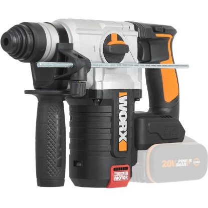 Der praktische Bohrhammer WX380.9 von Worx ist die optimale Unterstützung bei leichten Bohr- und Schlagbohrarbeiten in Beton, Stein und Naturstein. Mit einer Schlagzahl von 5.400/min erzielt der Schlagbohrer ein sauberes und effizientes Ergebnis. Die max. Schlagkraft beträgt 2,2 J, wodurch sich der Bohrhammer sowohl fürs Bohren in harten Materialien wie Stein und Beton als auch zum Meißeln, Stemmen sowie zum Abtragen von Fliesen bestens eignet.